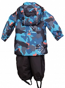 Демисезонный комплект для мальчика, куртка и полукомбинезон. Куртка однотонная, манжеты и воротник из трикотажной резинки. Куртка декорирована полоской "смалик" на капюшоне и однотонными горизонтальными полосами вдоль молнии. Карманы на куртке и полукомбинезоне прорезные.
